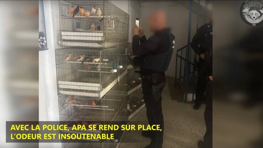 Nos équipes y ont découvert l’horreur dans une cave transformée en véritable prison pour oiseaux. Entassés dans de minuscules cages, sans eau, avec très peu de nourriture, ces animaux vivaient dans une obscurité totale, sans aération ni ventilation. L’odeur y était tout simplement insoutenable.