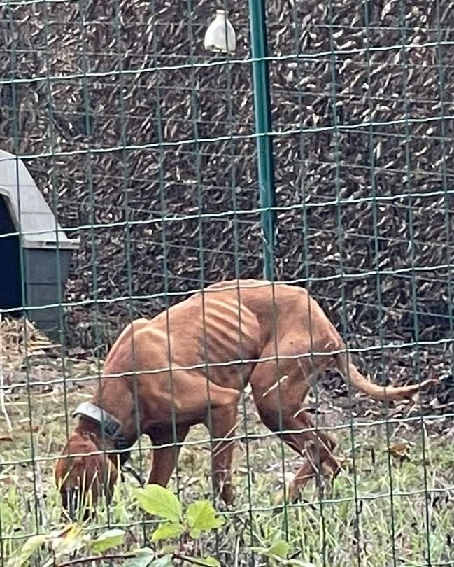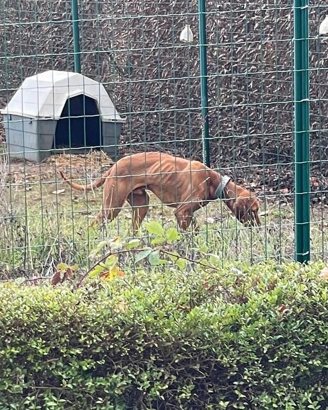 Deux mois plus tard, Action Protection Animale reçoit un signalement alarmant : un jeune chien squelettique est enfermé dans un enclos, complètement laissé à l’abandon. Nous intervenons immédiatement.