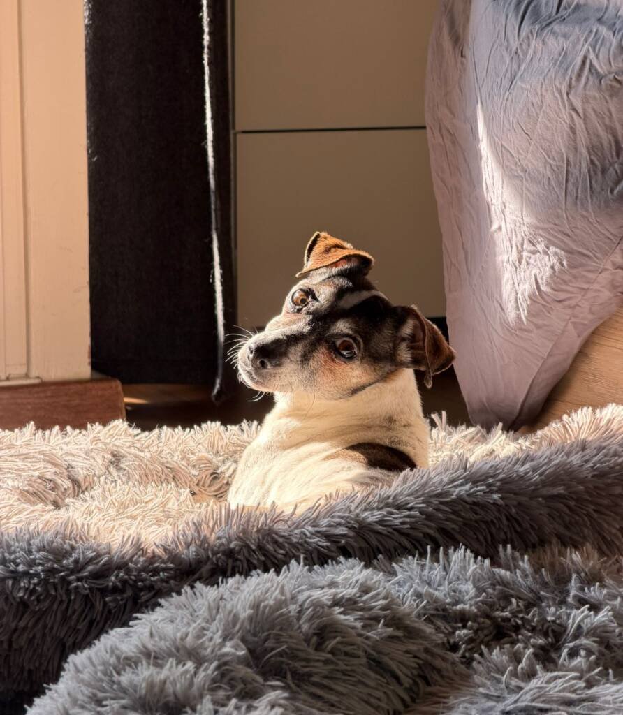 - Diamant savoure une retraite paisible : son panier moelleux (placé sous les rayons de soleil)