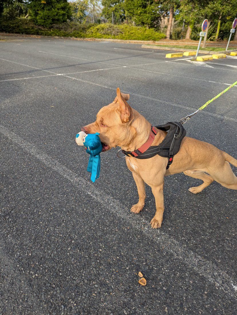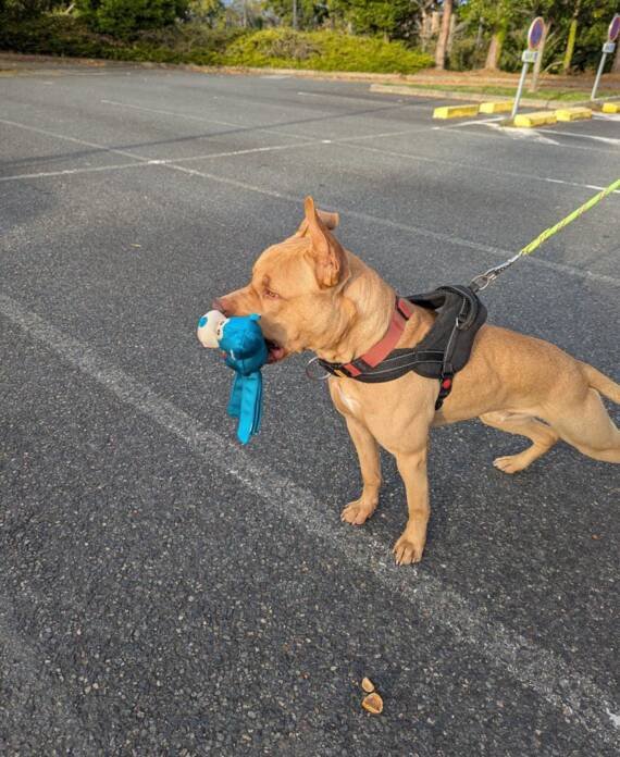 « Avec mon mari, nous sommes allés choisir un collier et un joli harnais pour Rio, et en passant dans le rayon des jeux, il a choisi tout seul celui qu’il voulait »