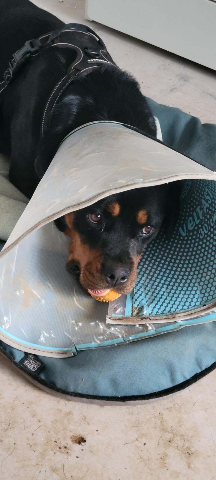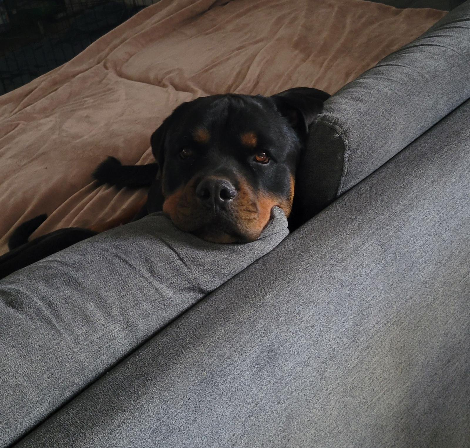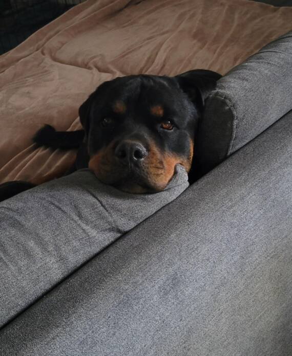 « Vasco et Vaïa sont vraiment adorables. Ils ont toutes les caractéristiques du Rottweiler : deux gros nounours de 50 kg persuadés d’en faire 10 ! Toujours collés à nous, de préférence sur nos pieds… au cas où nous déciderions de partir ! »