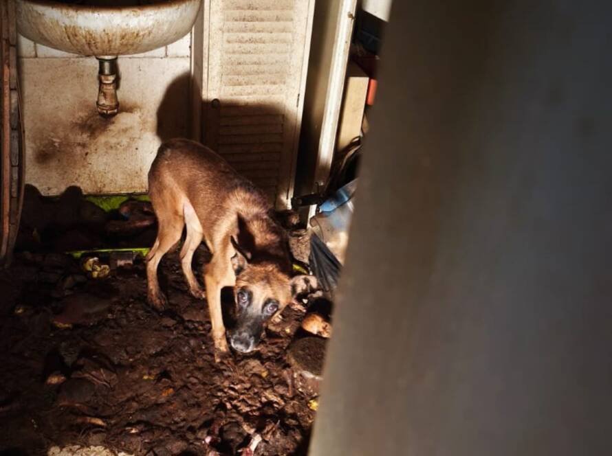Vu les odeurs émanantes sous la porte, les conditions de vie des animaux semblent très précaires.