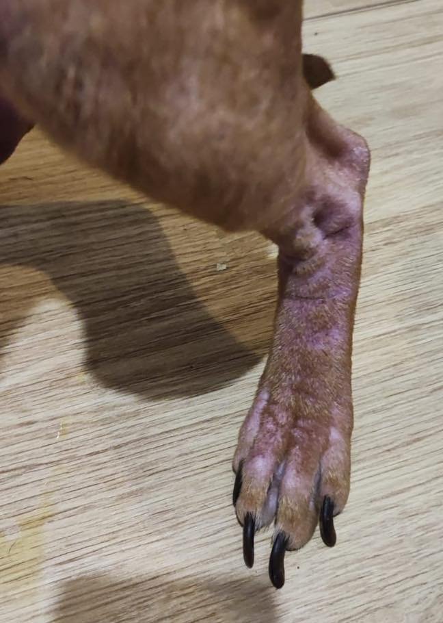 L’animal présentait de nombreuses plaies et zones démodéciques sur l’ensemble du corps. Enfermé en permanence au domicile, il ne sortait plus, n’était plus nourri correctement et ne bénéficiait d’aucun soin.